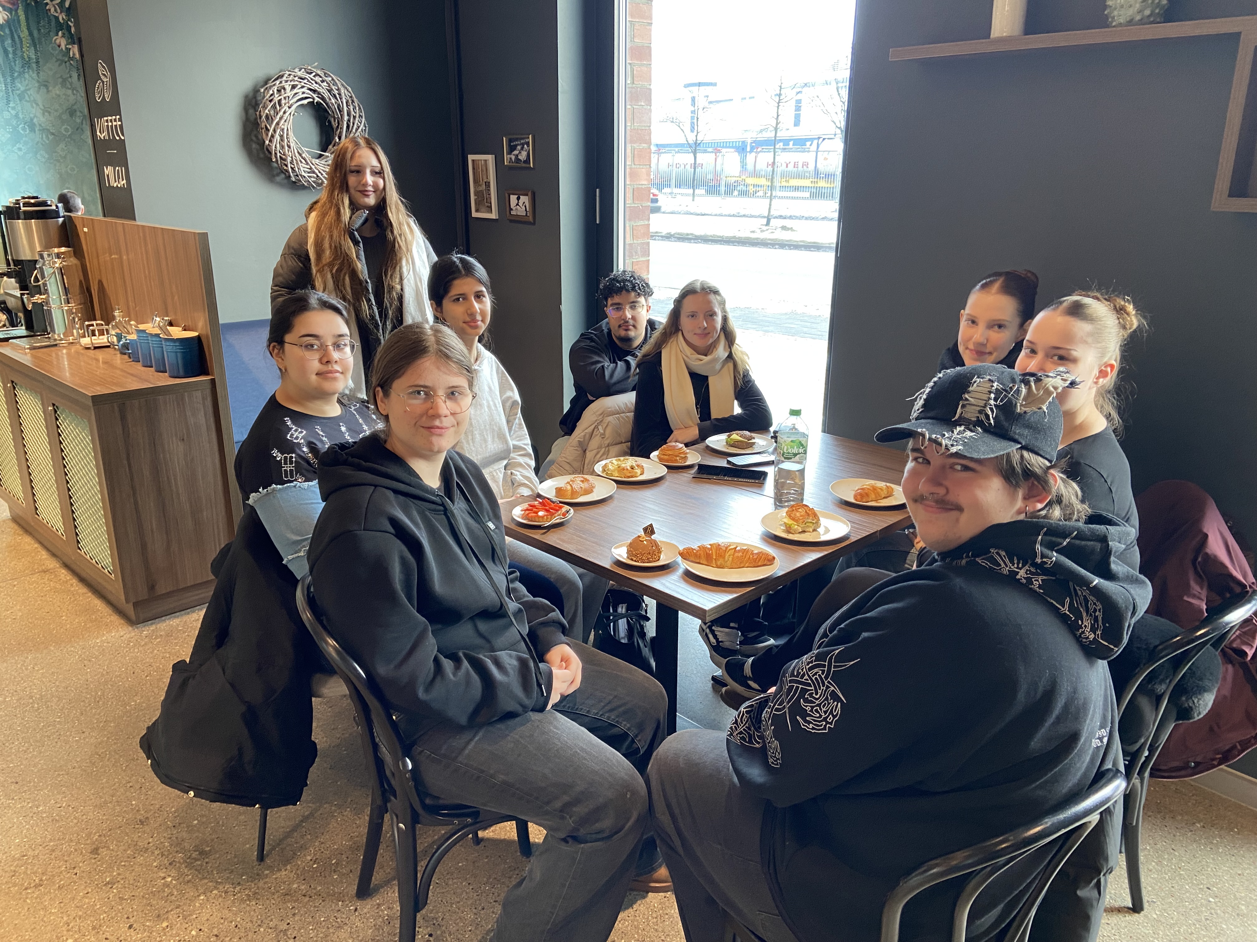 Bei Eiseskälte fuhr der WPU 10 Französisch am 2. Februar zum diesjährigen "Cinéfête" nach Kiel. Zunächst wärmten wir uns bei einer heißen Schokolade "un chocolad chaud" mit einem leckerem Croissant in einer französischen Bäckerei auf. Danach gingen wir zum kommunalen Kino in der Pumpe und schauten uns den französischen Film "Le panache" in Originalsprache mit deutschen Untertiteln an. Da an diesem Tag die Busse in Kiel streikten, kamen keine weiteren Schüler/innen von den Kieler Schulen hinzu und wir hatten das ganze Kino für uns alleine. In dem Film ging es um einen schüchternen Jugendlichen, der über das Theaterspiel zu seinen eigenen Stärken und seinem Selbstvertrauen findet und über sich hinauswächst. Alles in allem hatten wir einen schönen französischen Vormittag!
