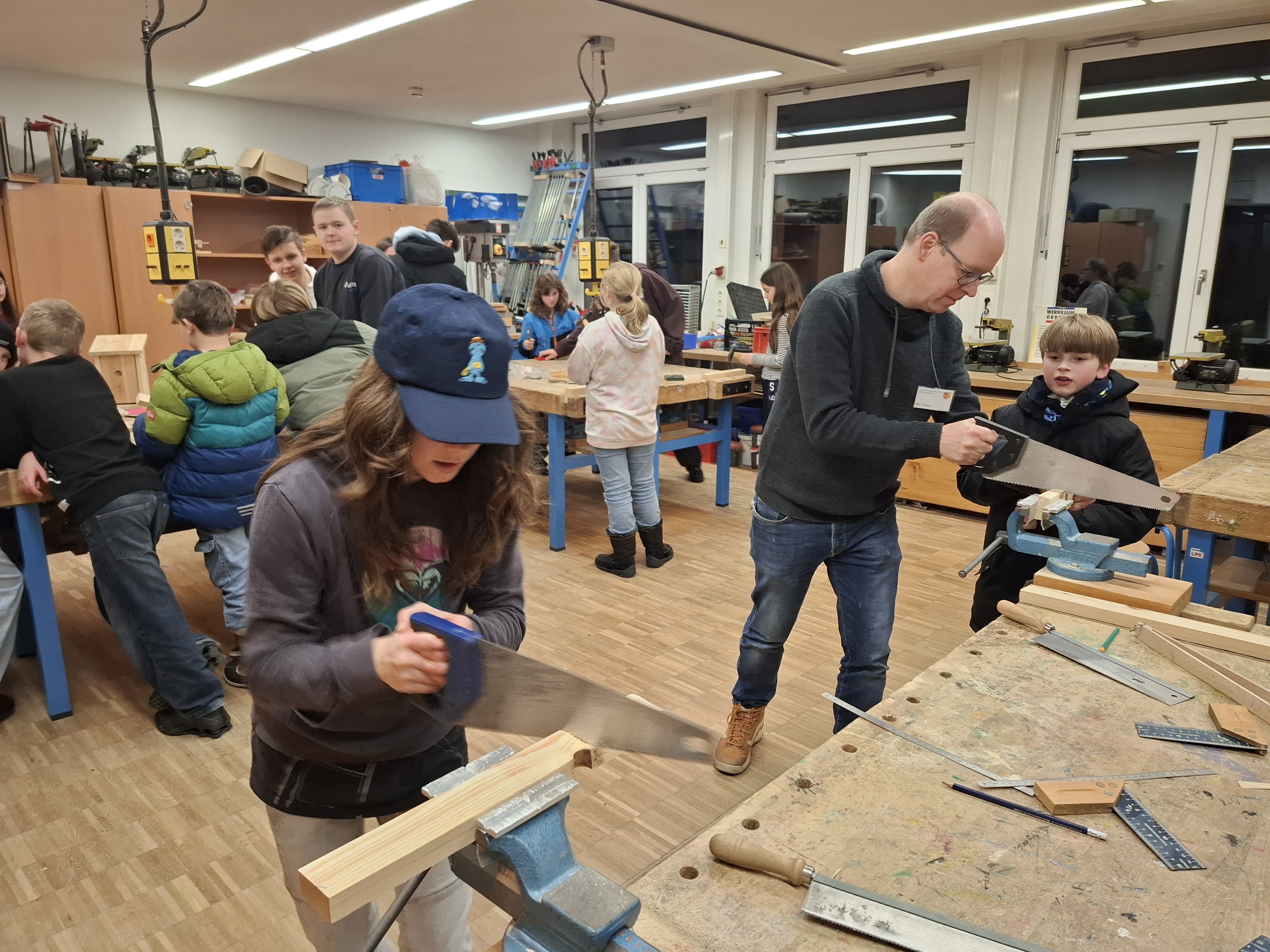 Nach einer informativen Präsentation der Schulleitung erkundeten die Kinder bei einer Rallye das Schulgebäude und erhielten in Kleingruppen spannende Einblicke in verschiedene Fächer und Fachräume. Unterstützt wurden sie dabei engagiert von älteren Schülerinnen und Schülern. Währenddessen nutzten die Eltern die Gelegenheit, bei einem Rundgang Eindrücke zu sammeln und mit unseren Lehrkräften ins Gespräch zu kommen.